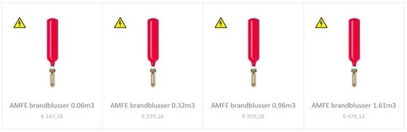 Brandblussers met NOVEC blusgas. Automatische objectblussers (kastblussystemen) om brand bij de bron te blussen. Voor automatische brandpreventie en brandblussing in kasten of behuizingen die voor de bedrijfscontinuïteit van groot belang zijnde apparatuur of installaties bevatten. AMFE brandblussers zijn eenvoudig te plaatsen, onderhoudsvrij en hebben een gegarandeerde levensduur van negen jaar. De AMFE brandblussers werken autonoom zonder 230 Volt en zonder bediening. Bij detectie van te hoge temperatuur in een met AMFE blussers bewaakte stroomkast of andere kast activeert de automatische AMFE blusser zichzelf. De sprinklerkop springt open waardoor het NOVEC blusgas door de kast wordt verspreid. NOVEC is een type blusgas dat in seconden een reactie met de brand op moleculair niveau aangaat. Het zoekt als het ware de bron op. Hierdoor is er weinig blusmiddel benodigd....