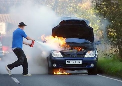 Advies en levering van speciale autobrandblussers. Brandblusser voor personenauto, bestelbus en ook voor vrachtwagen, stadsbus, werktuigen, enz. in het beroepsverkeer. Sprayblussers en standaard brandblussers.