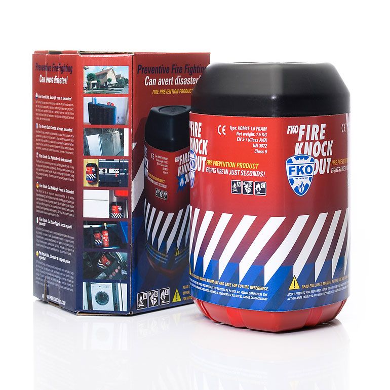 Fire Knock Out brandblusser. Fire Knock Out blusser automatisch. Goedkope blusser blust automatisch brand.